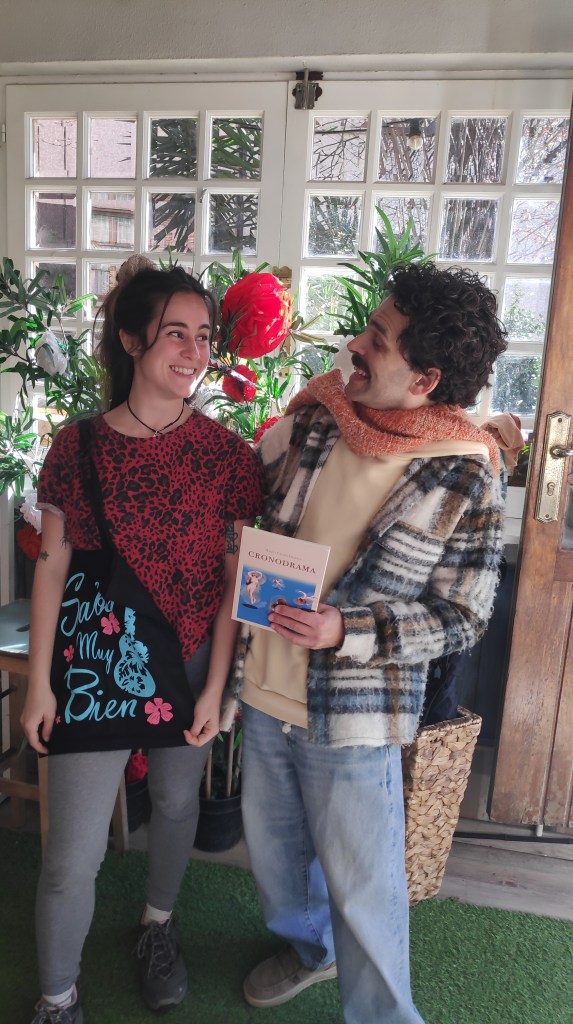 “Cronodrama”, palabra inventada por ella, es una píldora creada para relativizar, enfrentar y sincerarse amorosamente con ella misma y con el mundo, desde el humor, y así, “poder mecer las tristuras con el tiempo y su pasar”.